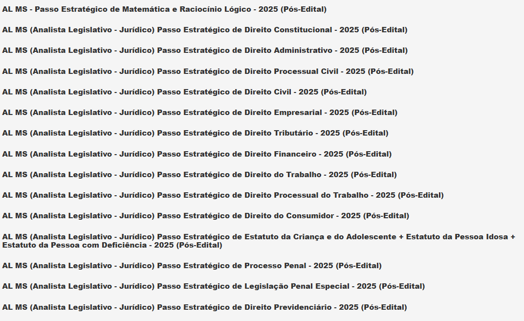 AL MS (Analista Legislativo – Jurídico + Passo) Pós Edital – Estratégia 2025